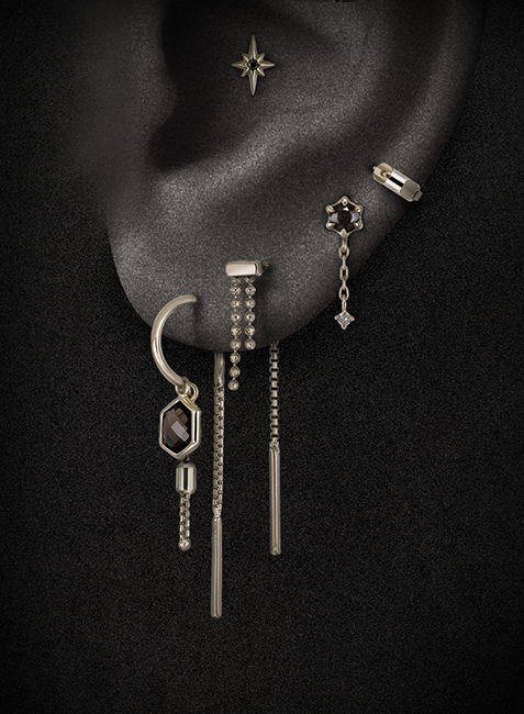 Nari • Black Spinel & White Topaz Flat Back Stud