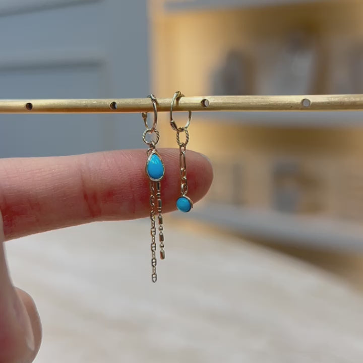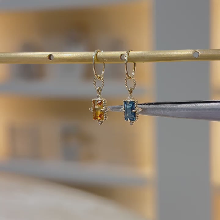 Play around with the magical allure of Grey Moonstone & London Blue Topaz studs along your Conch piercing, complemented by a each matching stone drop charm and hoop.
