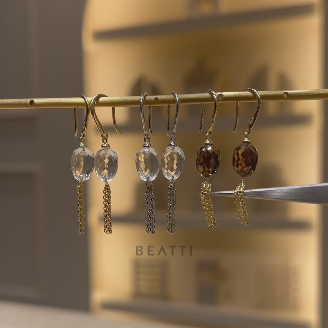 BEATTI Threaders Gold / Smoky Quartz BTE050 • Smoky Quartz Tassel Dangle Hoop Earrings BTE058 YG L BTE050 • Smoky Quartz Tassel Dangle Hoop Earrings