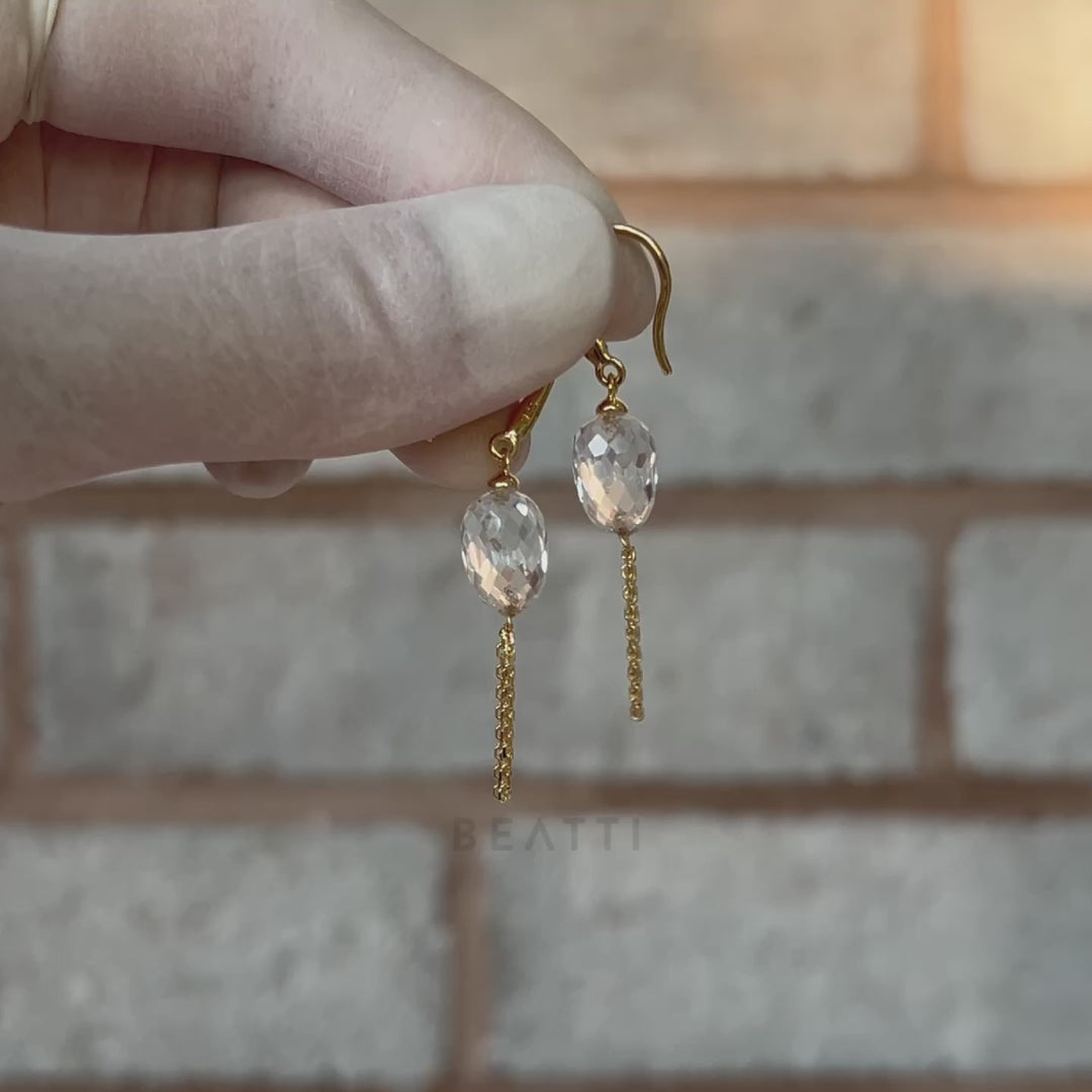 BEATTI Threaders BTE051 • White Topaz Gemstone Threader Earrings BTE051 • White Topaz Gemstone Threader Earrings