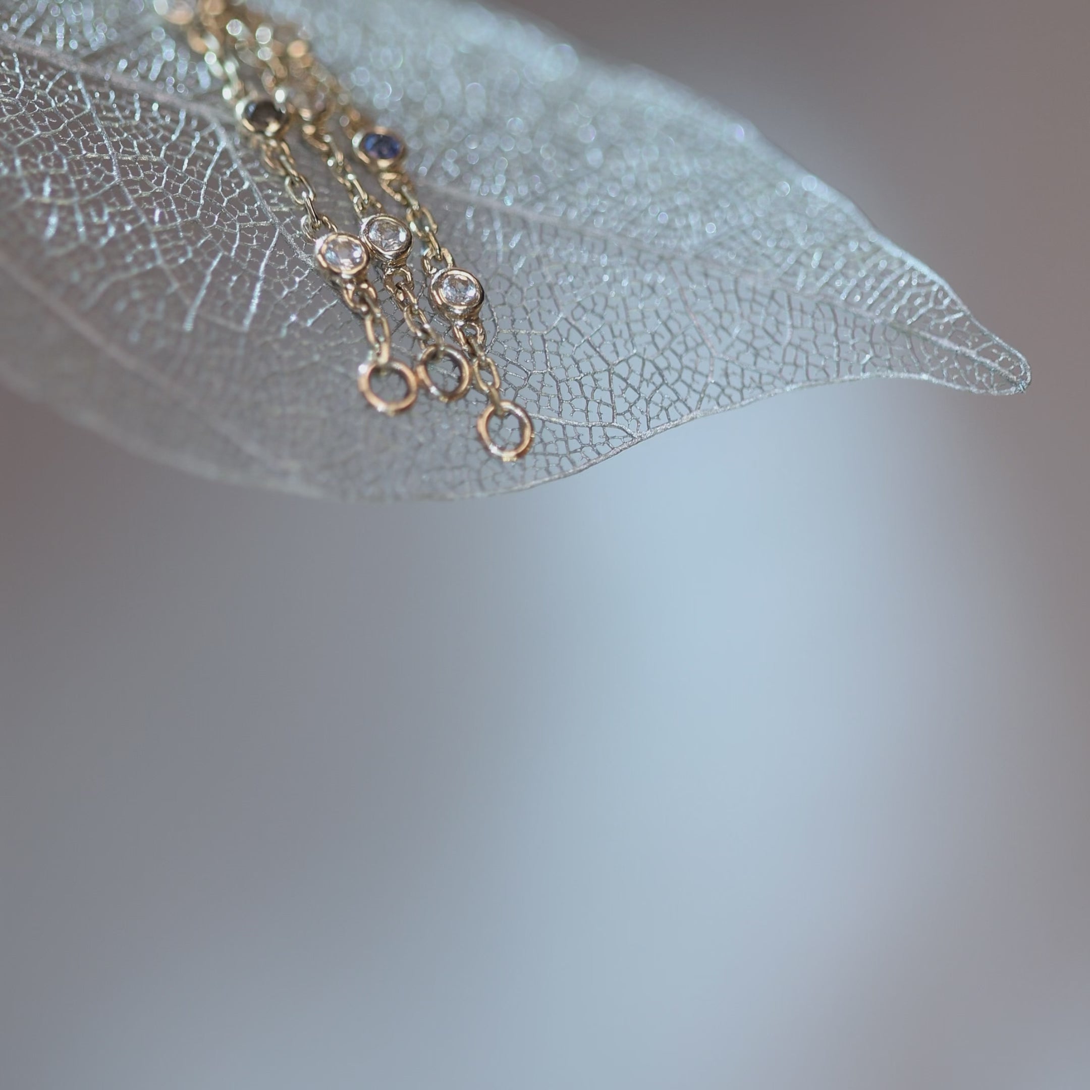 Crafted from the finest 14K gold, this chain attachment features a dazzling round gemstones to add a captivating display of color and brilliance to your everyday glamour. Its delicate construction allows it to hang between two cartilage earrings, whether studs or hoops, seamlessly uniting two distinct earring styles, creating the illusion of a joint earpiece. It comes with a length of 43mm, offering a perfect modern twist or mixing and matching styles for a bold statement.