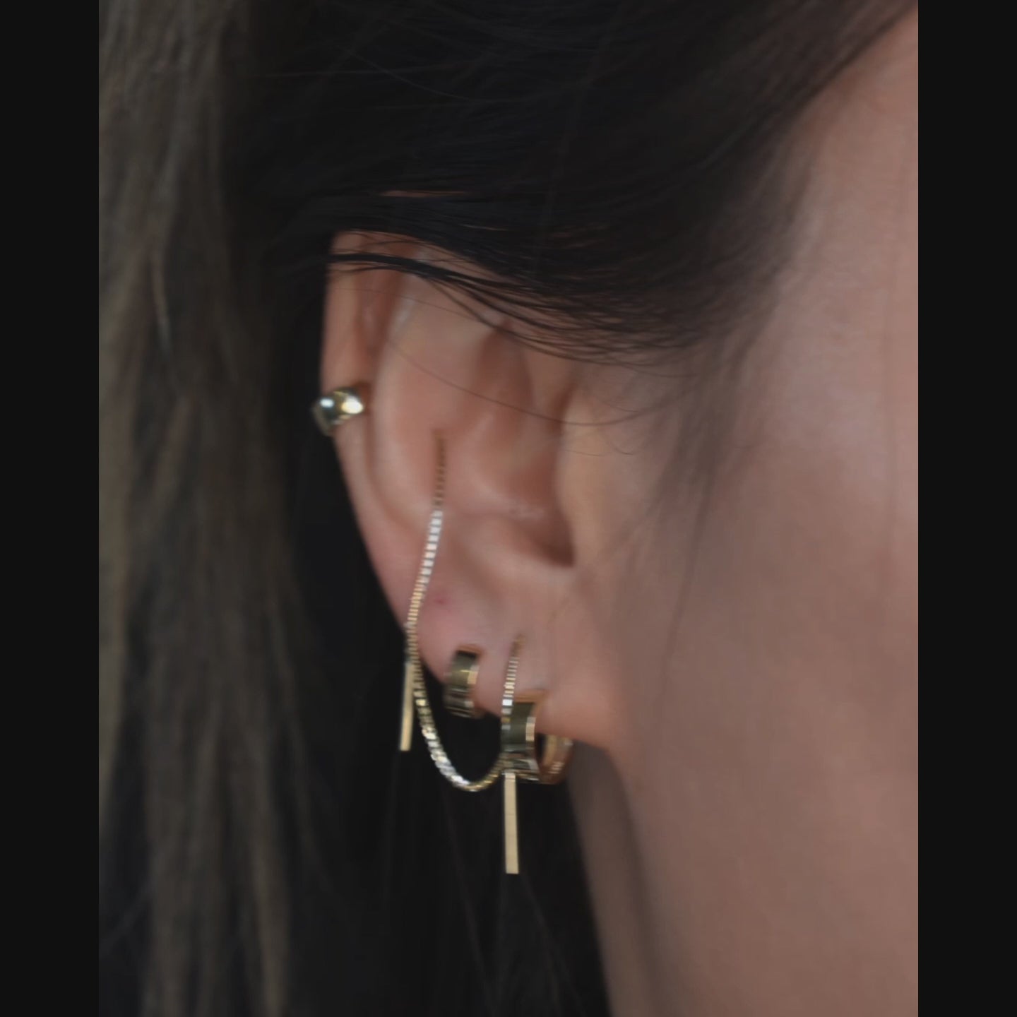 Designed to gracefully thread through multiple piercings, these long chain threaders offer endless possibilities for creative styling. Whether worn alone or paired with other pieces, their stable yet delicate design ensures a secure and comfortable fit. Perfect for adding a touch of refined elegance to any look, these earrings are a must-have for those who appreciate timeless craftsmanship and modern versatility.