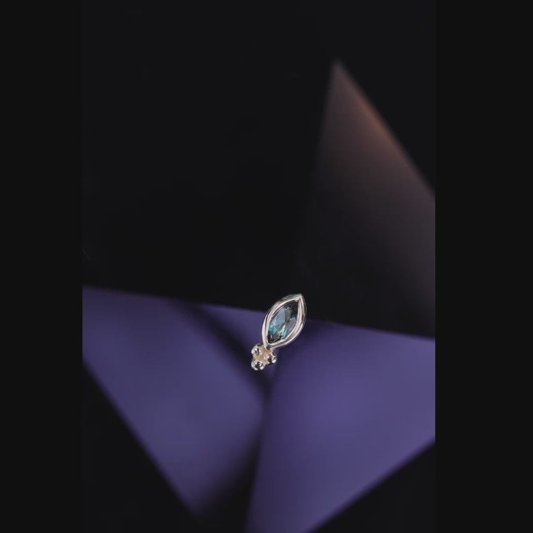 Introducing 'Rue': our Marquise Shape Stud Earrings, crafted in 14k solid gold—nickel and cadmium free for your comfort. Each gemstone is expertly cut to showcase its natural splendor. Designed for easy insertion, Rue features a secure, threadless stud with a mirror-polished, matching gold-colored anodized titanium post. Perfect alone for a subtle touch of elegance or layered for a personalized ear stack, Rue is a classic yet versatile addition to your collection.