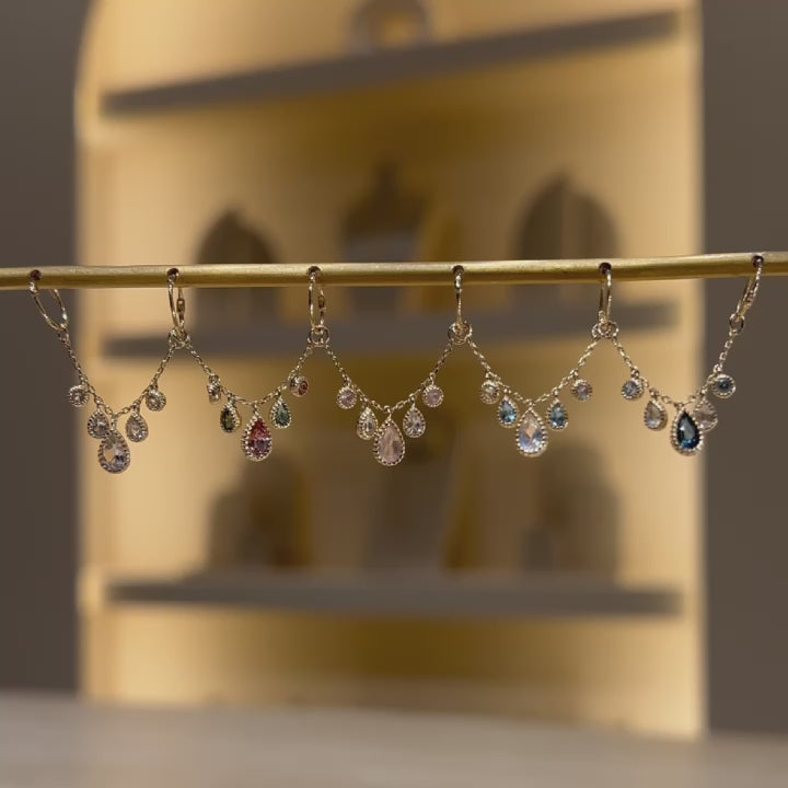 This delicate attachment is a true expression of graceful style. It features a central pear-cut gemstone, beautifully framed by a soft halo of gold. This piece is designed to drape across your ear, creating a subtle, elegant curve of light and color. It's a testament to genuine craftsmanship and personal expression.