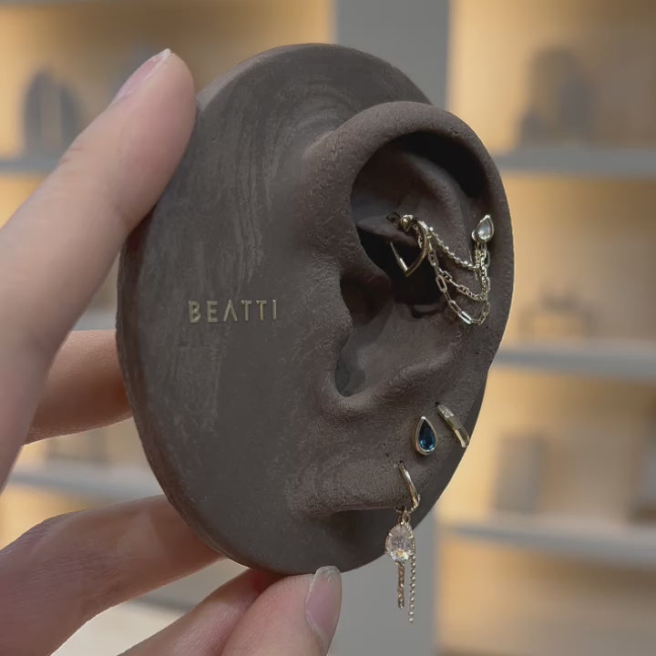 Elevate your piercing style with our 14k solid gold mixed chain attachment. This versatile piece combines three distinct chains—a refined faceted ball chain, a mini anchor chain, and a slender mini clip chain—for a layered, textured look. Designed to link two piercings or wrap stylishly around conch or helix piercings, it adds a unique, subtle upgrade to your jewelry collection.