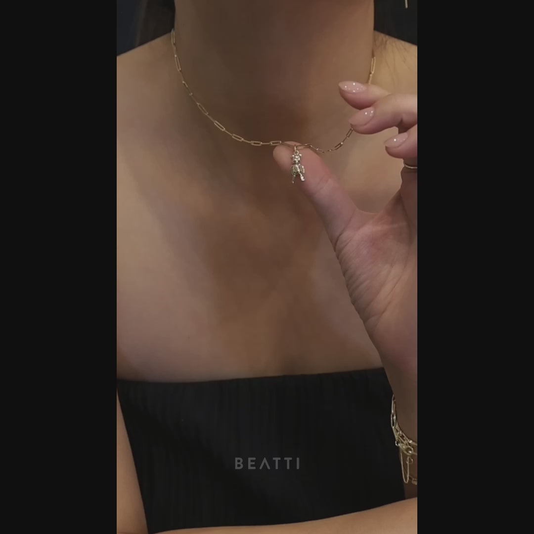 Meet your new favorite charm—a playful yet elegant teddy bear pendant crafted in 14K solid gold. Its head, arms, and legs are fully movable, adding a touch of whimsy to this timeless design. Far from ordinary, this little guy showcases exceptional craftsmanship, making it a forever piece to cherish.