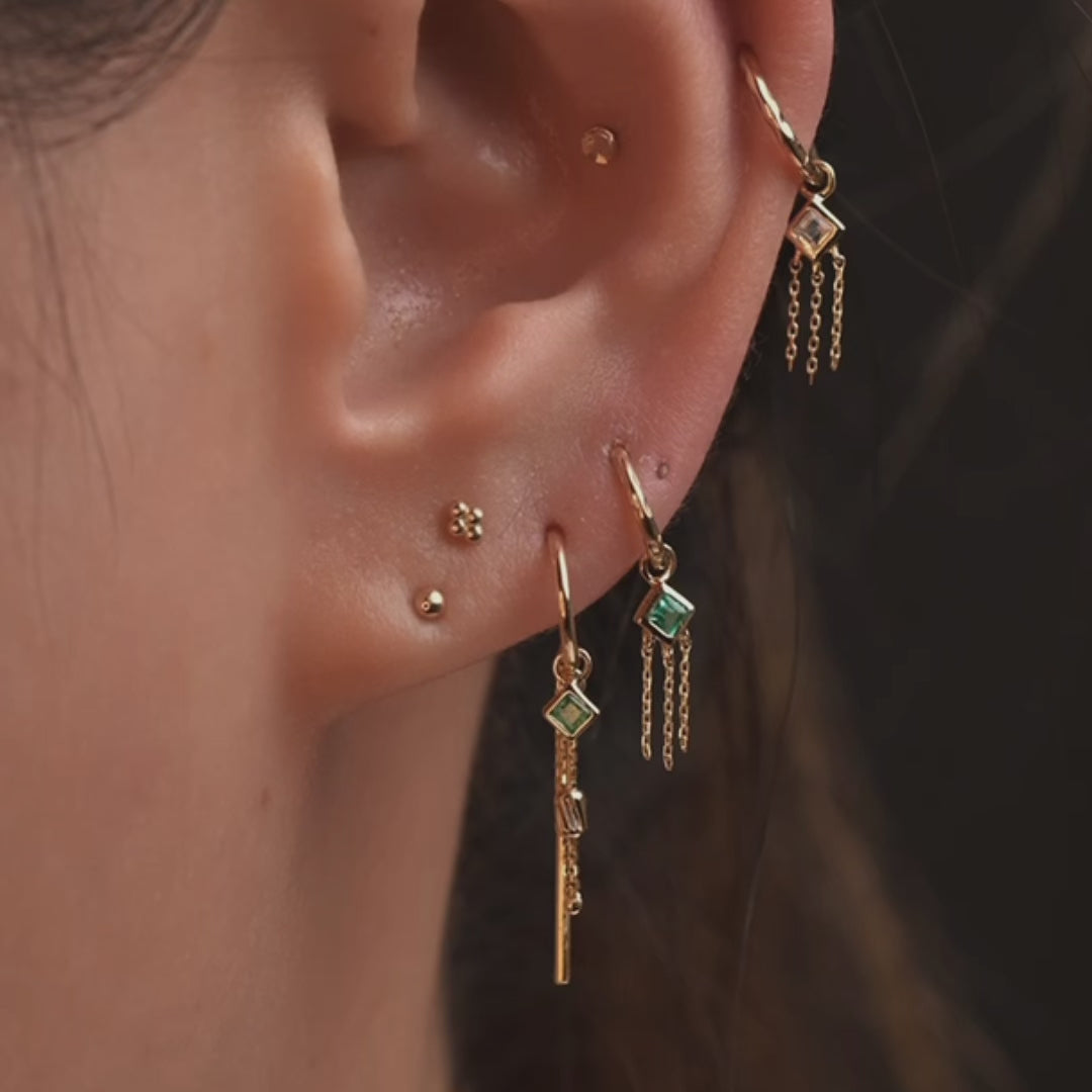Neo · 14K Gold Princess Cut Gemstone with Chain Tassel Hoop Charm