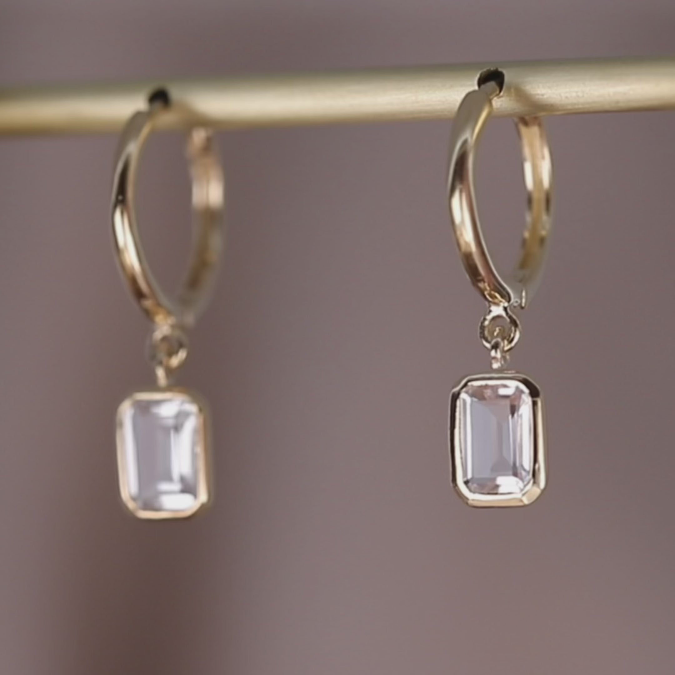 Nora • Emerald Cut Genuine Topaz Hoop Earrings