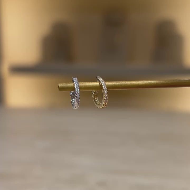 A timeless silhouette, redefined with quiet brilliance. This 14K solid gold hoop features a front-facing row of pavé-set CZ, delivering subtle sparkle without overpowering. Its structured shape and secure hinge closure make it a reliable everyday piece—refined enough for solo wear, versatile enough to pair with charms or layer into a stack.