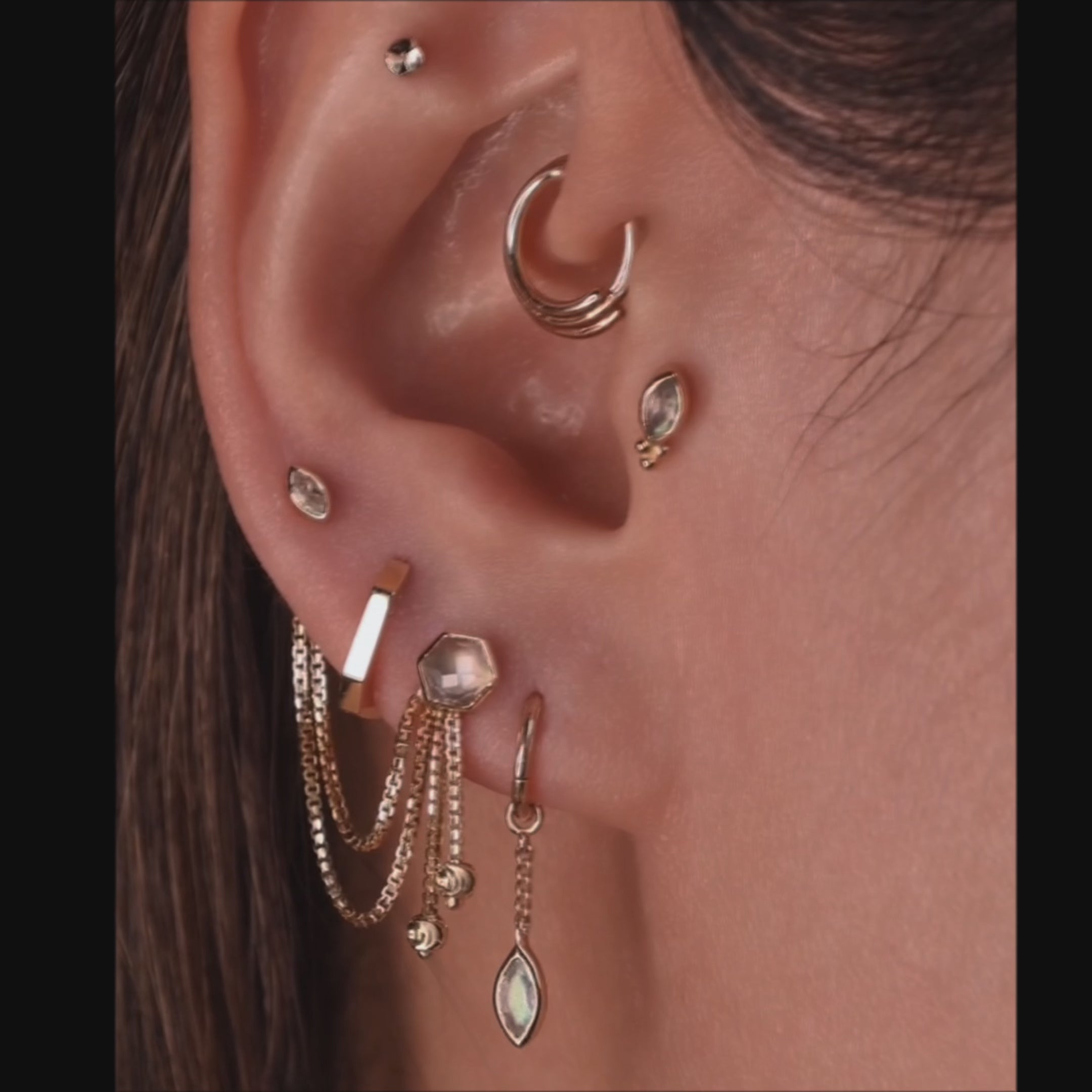 Introducing 'Rue': our Marquise Shape Stud Earrings, crafted in 14k solid gold—nickel and cadmium free for your comfort. Each gemstone is expertly cut to showcase its natural splendor. Designed for easy insertion, Rue features a secure, threadless stud with a mirror-polished, matching gold-colored anodized titanium post. Perfect alone for a subtle touch of elegance or layered for a personalized ear stack, Rue is a classic yet versatile addition to your collection.