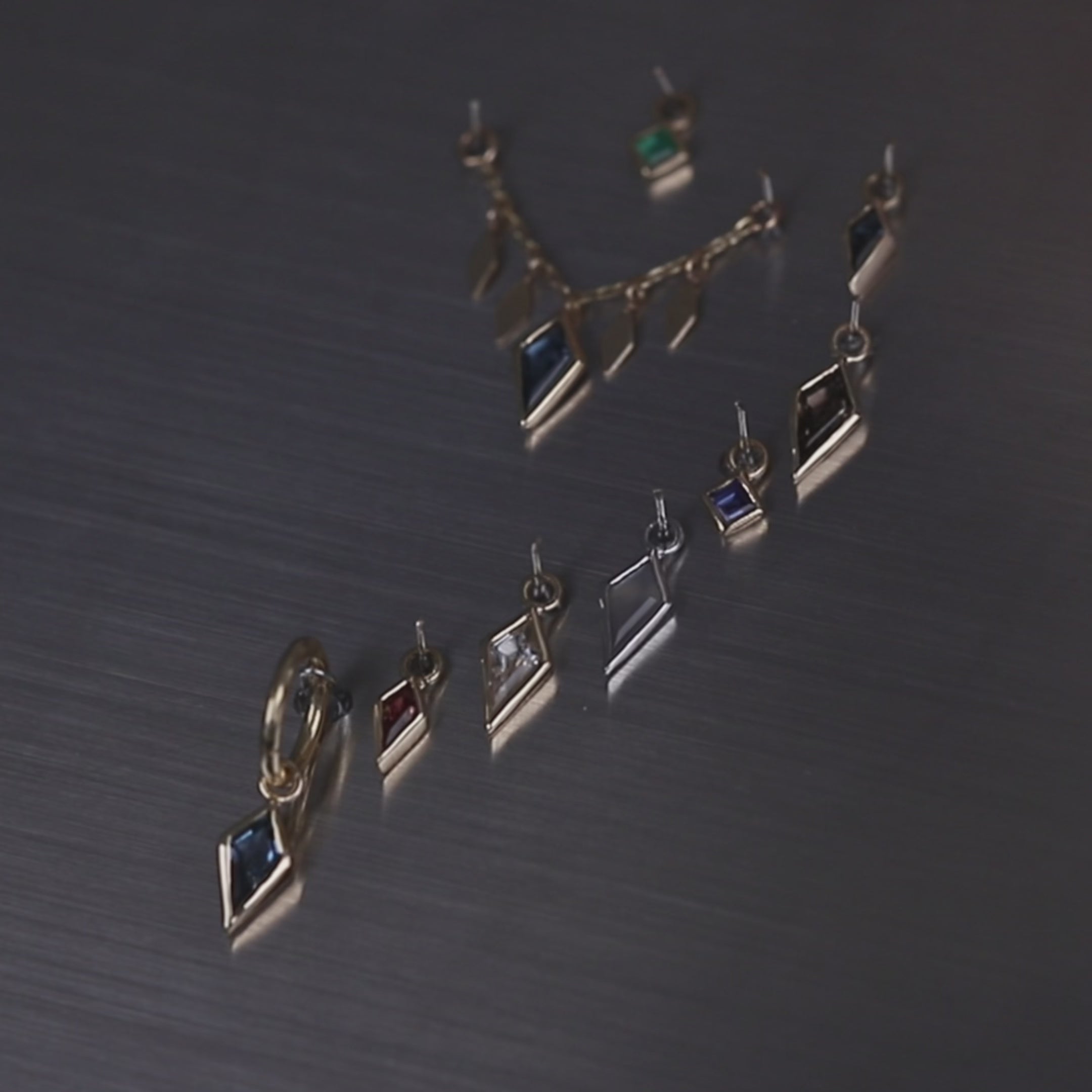 Discover 'Zenith', our captivating Kite Cut Mini Gemstone Hoop Charms. Handcrafted by skilled artisans, these charms showcase one-of-a-kind genuine gemstones, each uniquely beautiful. Their kite-shaped design adds a modern, edgy twist, making them perfect for anyone looking to enhance their style with a piece that's as individual as they are.